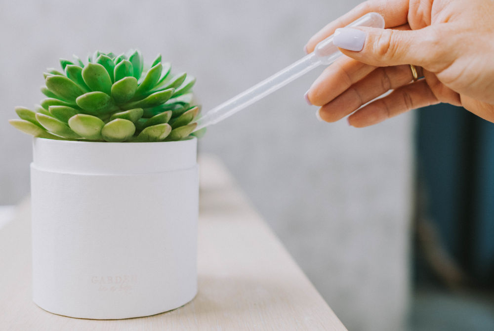 Στη συσκευασία θα βρείτε ένα δοσομετρητή νερού κι ένα ξύλινο δείκτη υγρασίας. Τα παχύφυτα προτιμούν να ζούν σε θερμοκρασίες μεταξύ 15-30 βαθμούς C και χρειάζονται νερό κάθε 10-15 ημέρες. Χρησιμοποιώντας το δοσομετρητή ποτίστε κάθε φυτό κοντά στον κορμό του γεμίζοντας και αδειάζοντάς το 2-4 φορές. Για να γεμίσετε το δοσομετρητή, απλά βάλτε λίγο νερό μέσα σε ένα δοχείο και πιέστε το επάνω μέρος του.Τοποθετήστε τη μύτη του δοσομετρητή μέσα στο νερό και απελευθερώστε το επάνω μέρος από την πίεση μέχρι να γεμίσει ολόκληρο με νερό. Είναι έτοιμο να ποτίσετε τα φυτά σας! Το νερό θα κυλήσει ανάμεσα από τις πέτρες και θα φτάσει στις ρίζες τους. Με το δείκτη υγρασίας μπορείτε να ελέγχεται την υγρασία του χώματος. Εάν δείτε – βάζοντας το δείκτη υγρασίας μέσα στο χώμα, κοντά στον κορμό του – ότι το χώμα του είναι υγρό, μην το ποτίσετε.